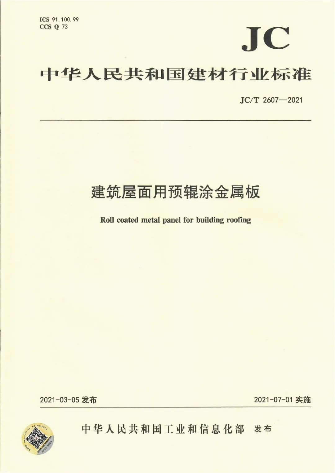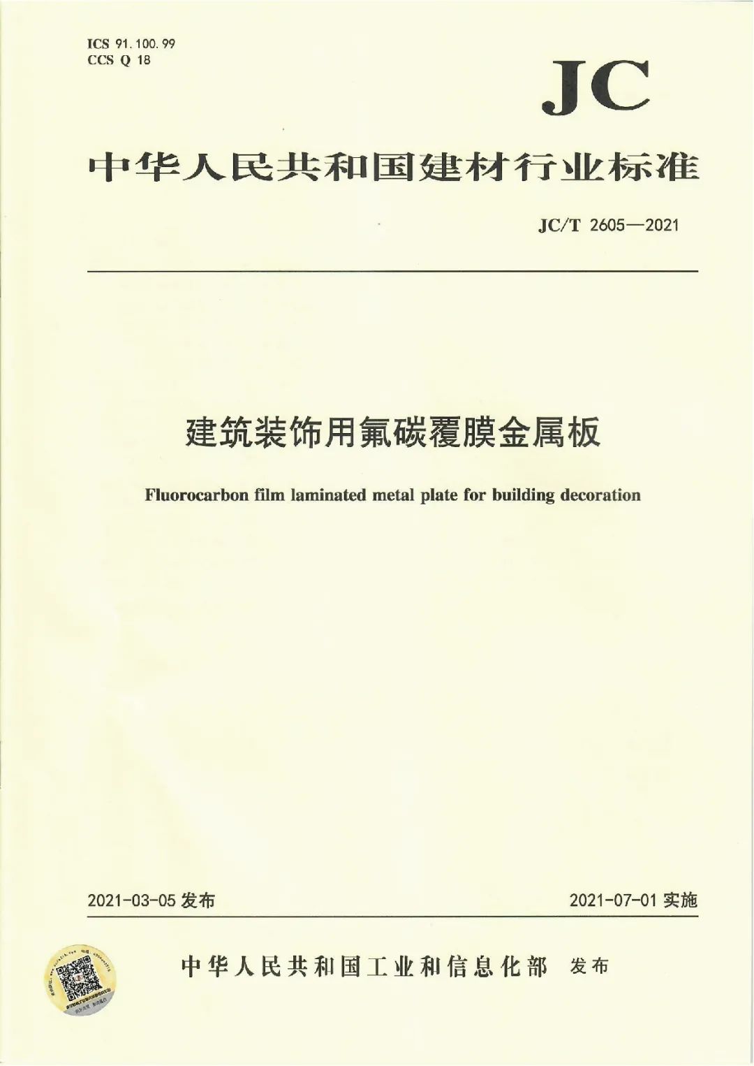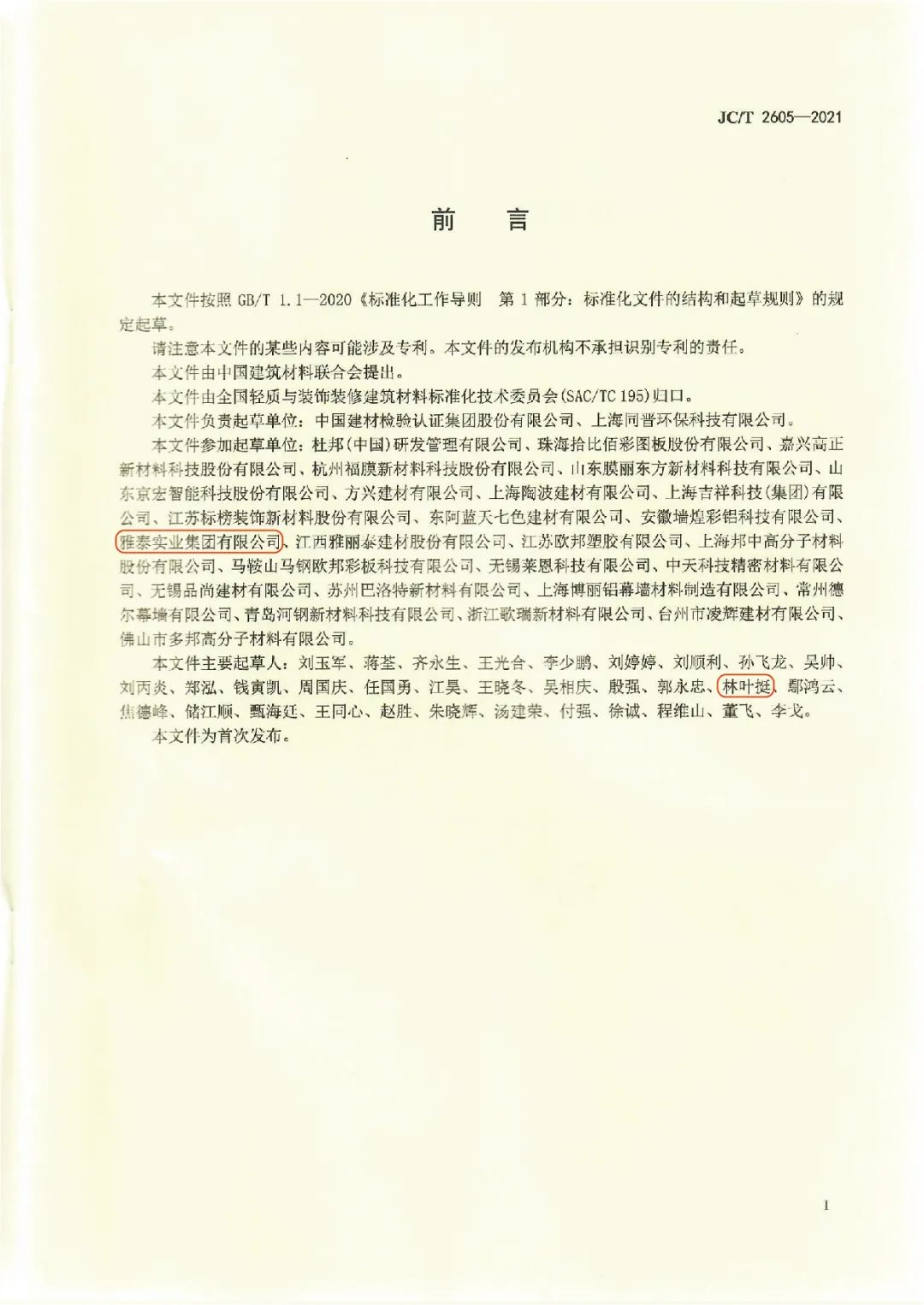 近日,由中國建筑材料聯(lián)合會(huì)提出,雅泰實(shí)業(yè)集團(tuán)參與起草的《JC/T2605-2021建筑裝飾用氟碳覆膜金屬板》、《JC/T2607-2021建筑屋面用預(yù)輥涂金屬板》兩項(xiàng)行業(yè)標(biāo)準(zhǔn)于2021年3月5日發(fā)布,同年7月1日正式實(shí)施,公司技術(shù)部經(jīng)理林葉挺為此次兩項(xiàng)行業(yè)標(biāo)準(zhǔn)的主要起草人之一。