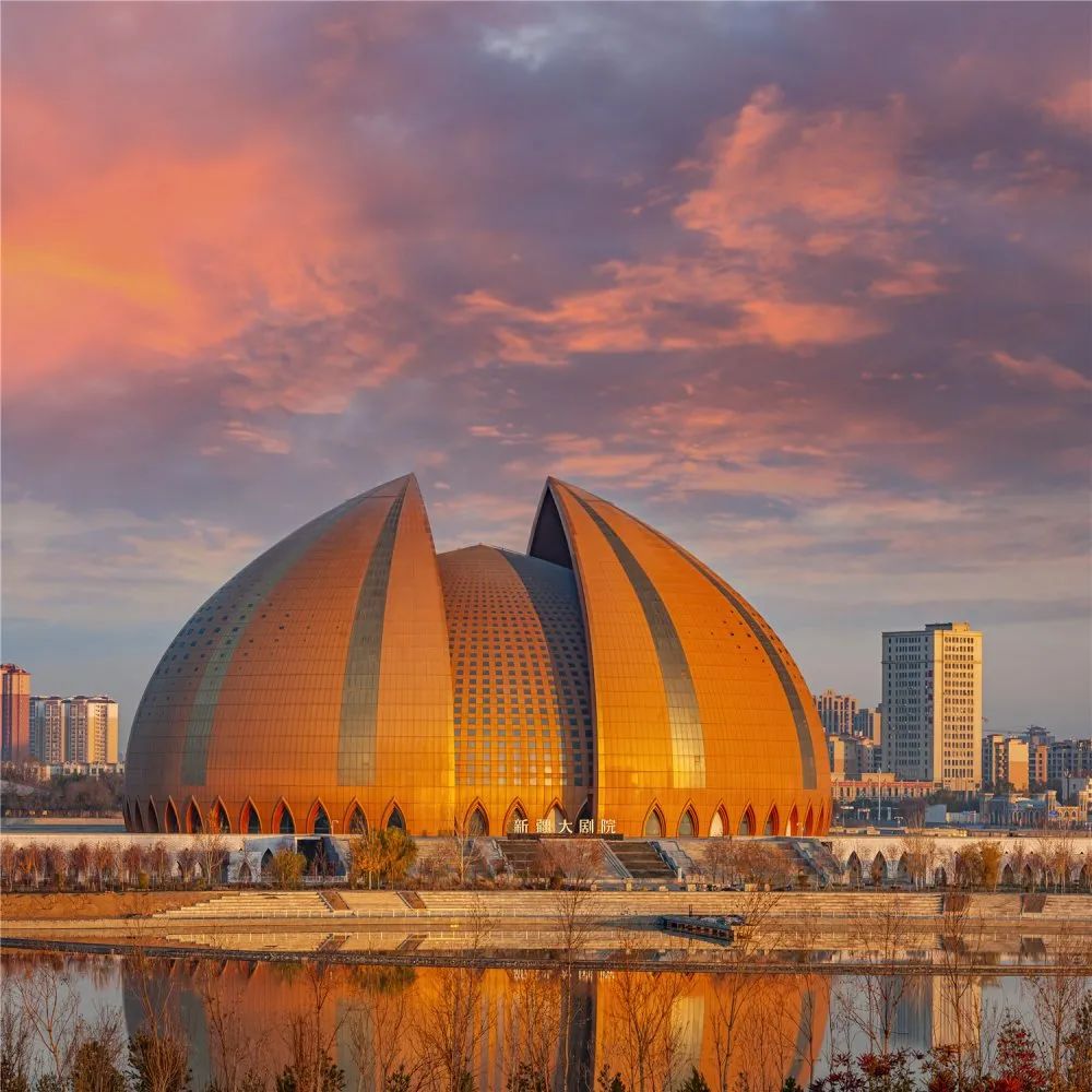 座落于昌吉的新疆大劇院,是中國(guó)目前最具民族文化特征的標(biāo)志性建筑,也是印象西域國(guó)際文化旅游產(chǎn)業(yè)園的核心建筑。主體坐落在平緩的臺(tái)基上,以盛開(kāi)的天山雪蓮為原型,通過(guò)抽象與創(chuàng)新的設(shè)計(jì)手法,形成里外套層的穹頂造型主體形象。